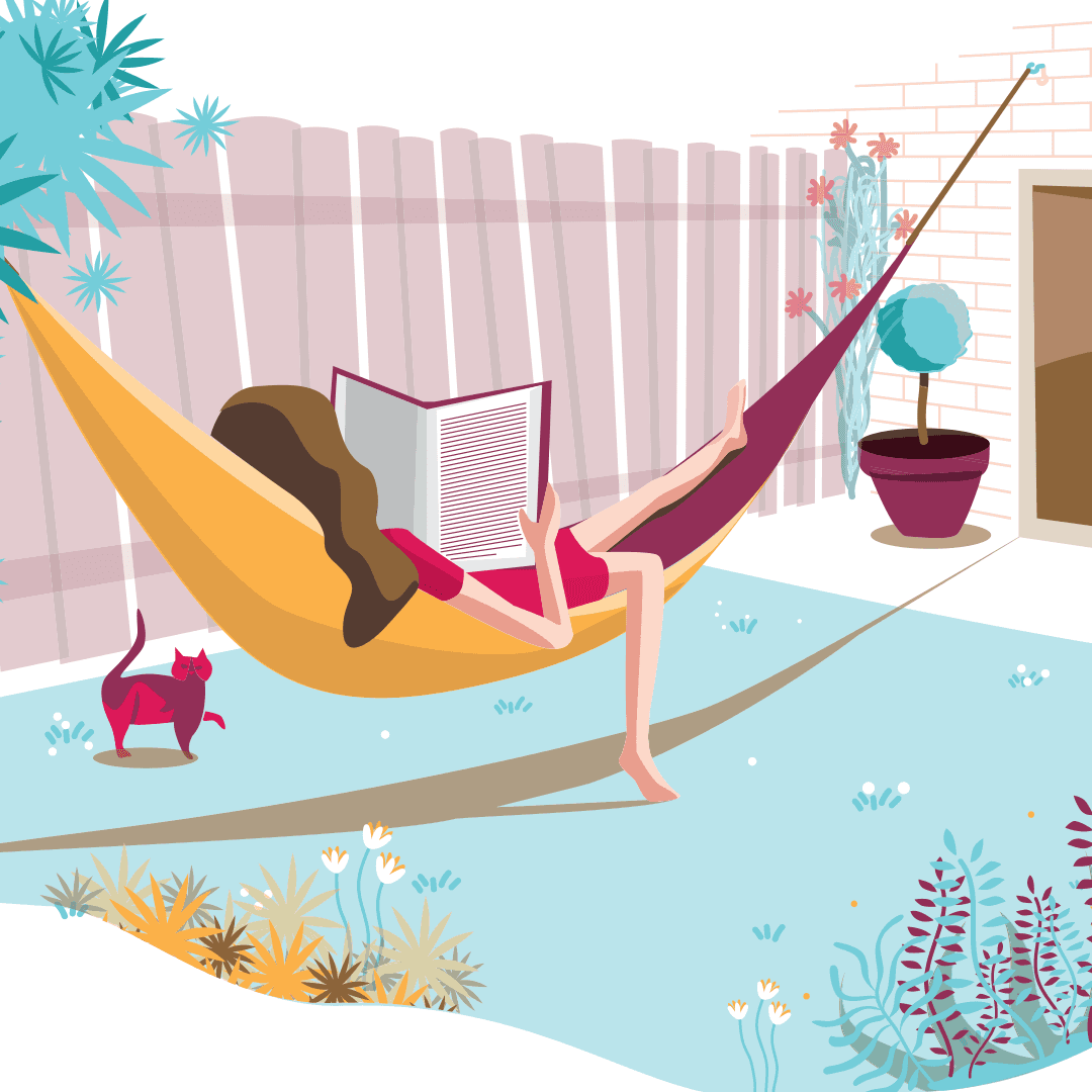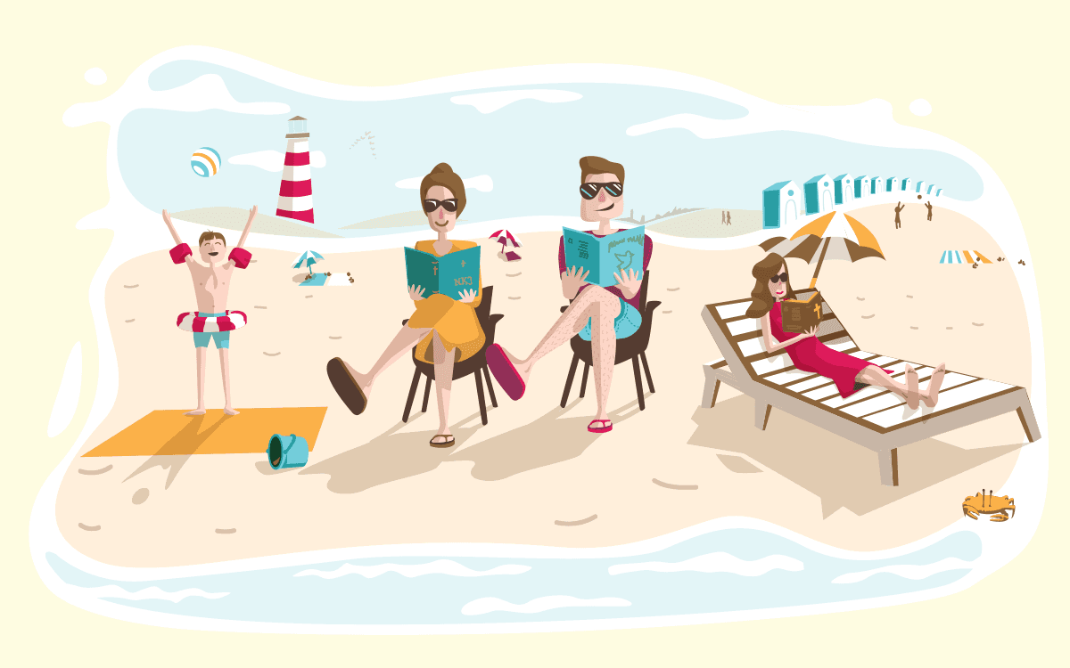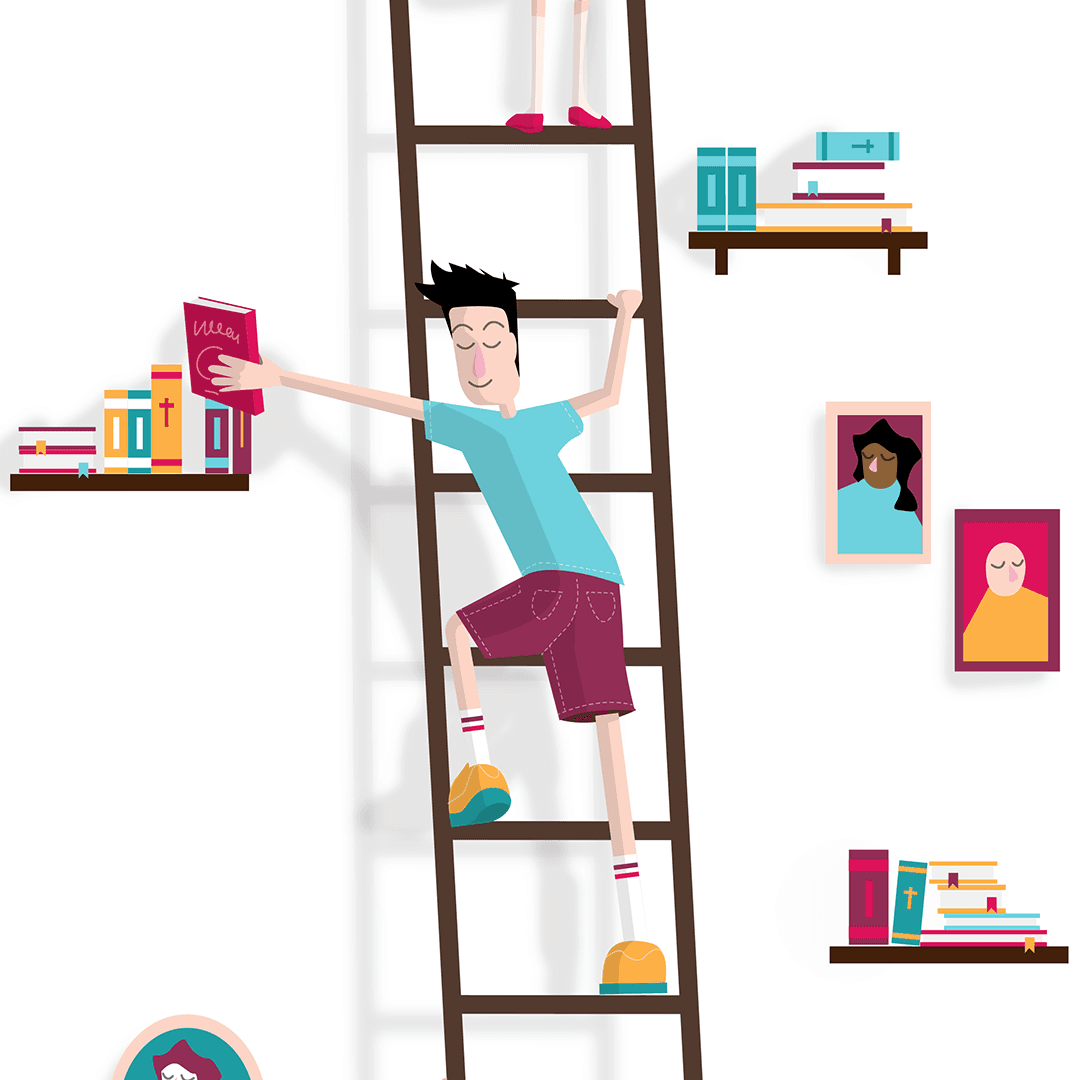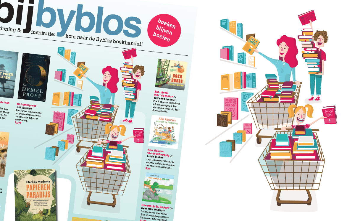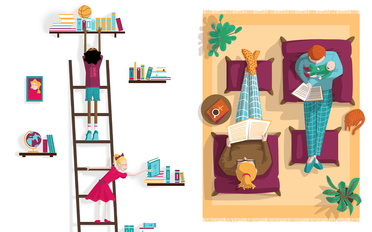 The illustration style is based on a fun depiction of real situations of reading. The illustrations aren't all out creative but there is a edge to the style, borrowed from the 50's. While also being kid-friendly and fun to look at.