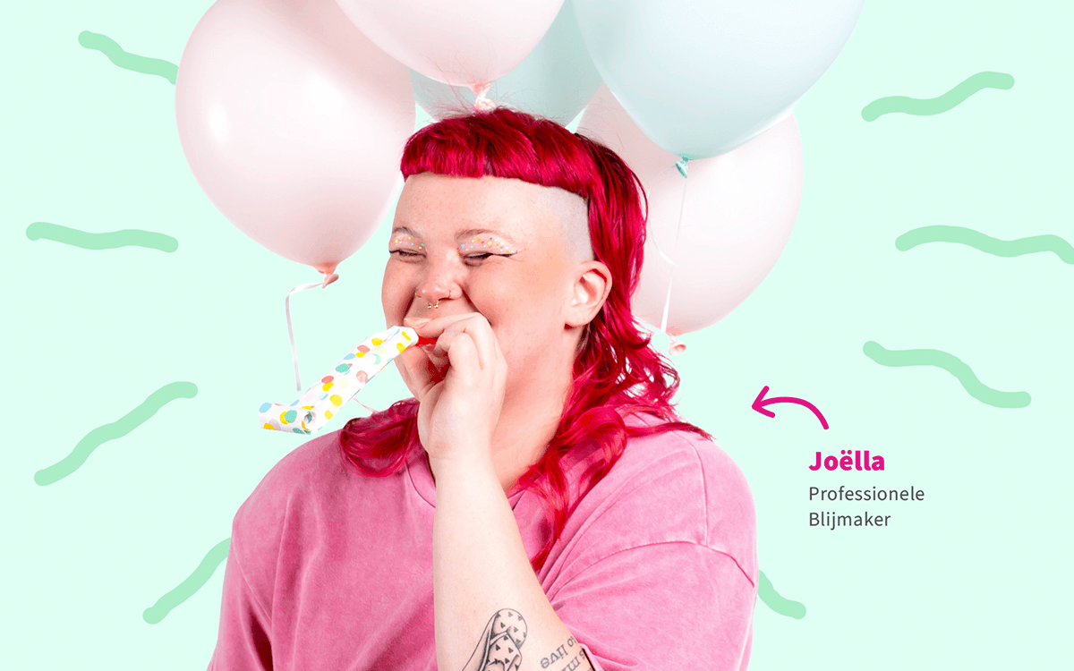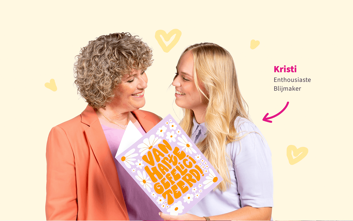 All our main visuals have a simple formula: Collegues, Cards/Gifts and smiles. Together with the brand colors, doodles and message it's one big happy visual.