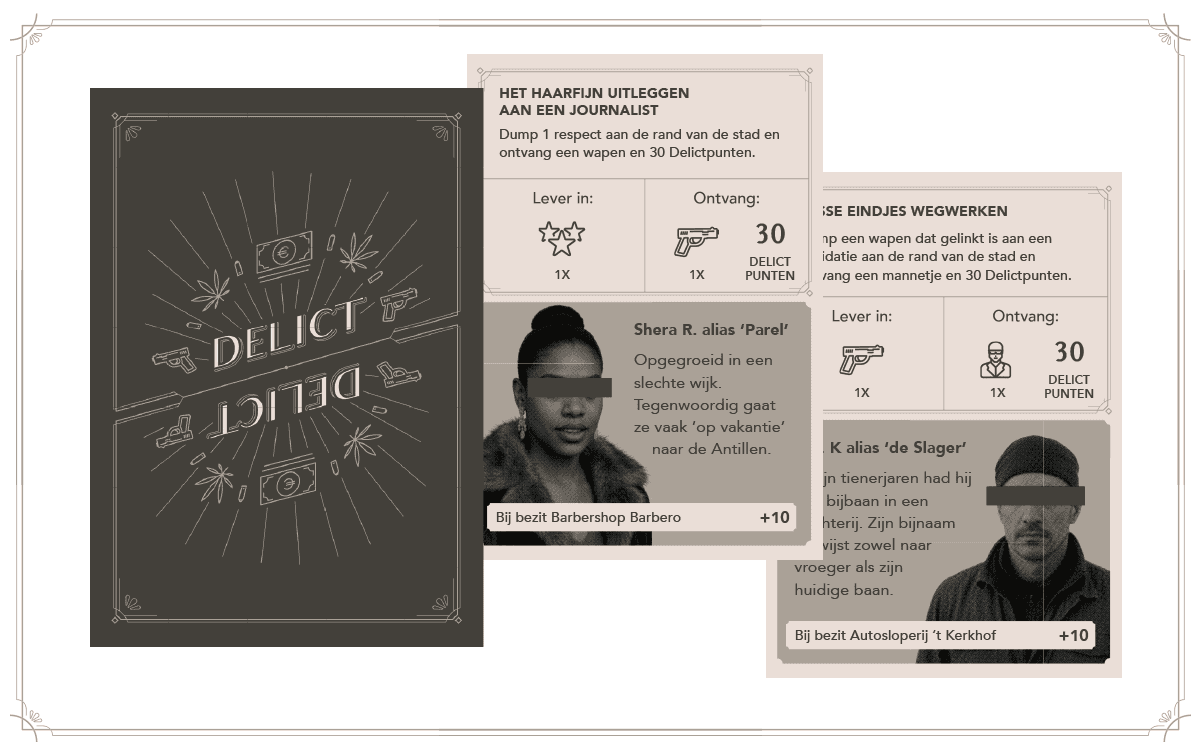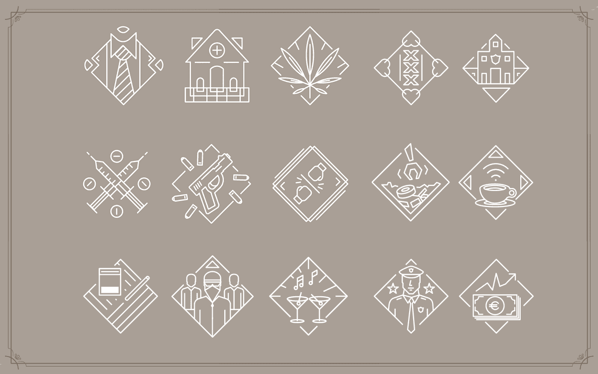 The style is set in a more non-typical gangster vibe of the 20's Art Deco movement. Dark yet chique is the vibe, based on the fact that the illegal underworld is always interlaced with the legal day-to-day life.
